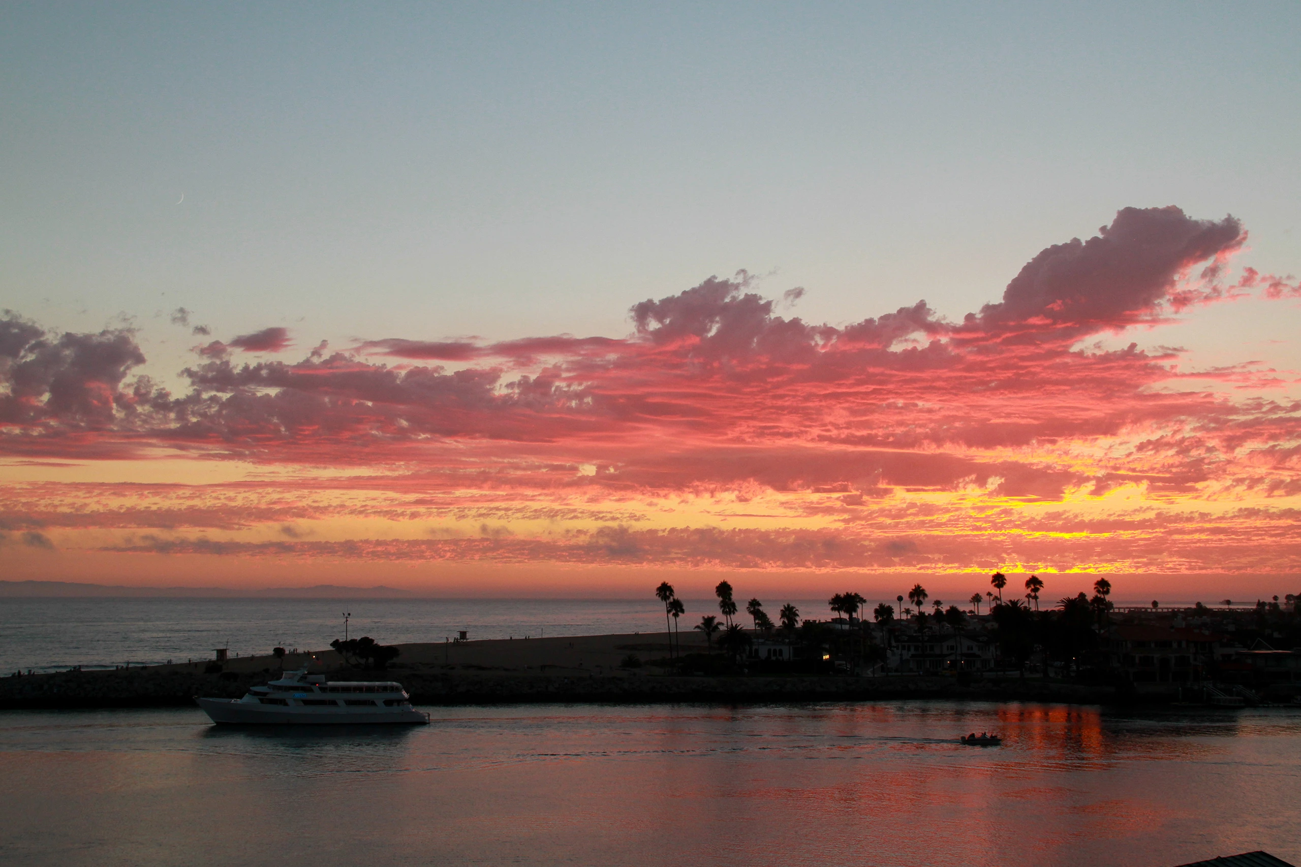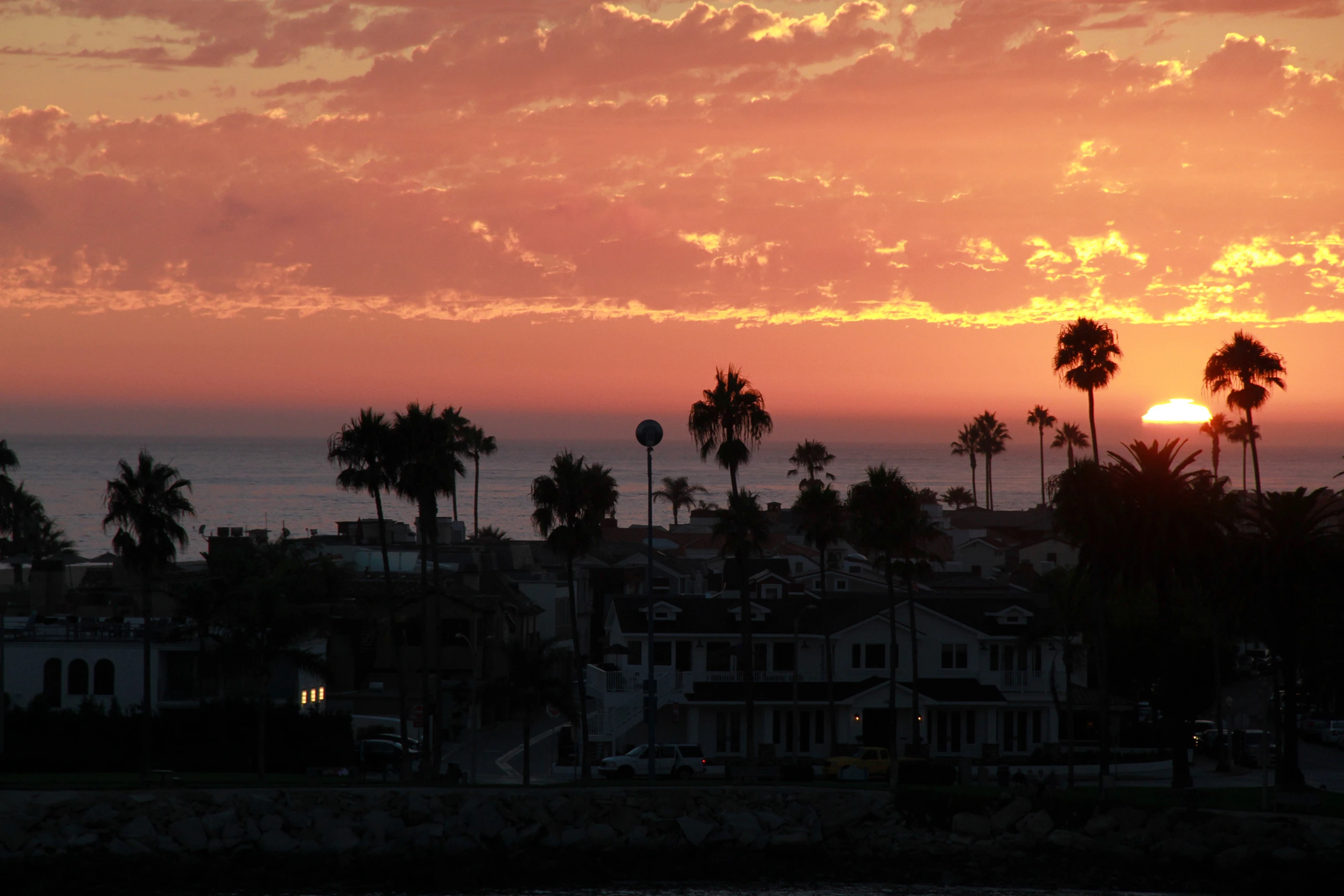 sunset view over southern californian coastal city and harbor