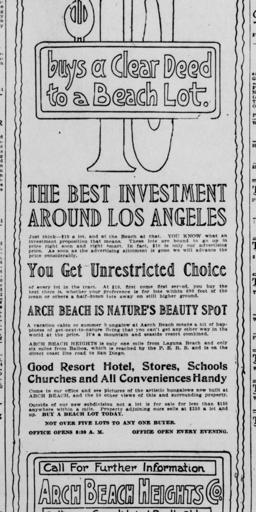 Most of these turn-of-the-century ads are for Laguna Beach – a special favorite of mine – but you’ll find a few for Newport Beach & Dana Point in the mix.