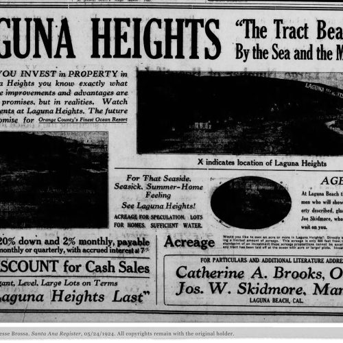 Predictably, the dawn of real estate advertisements for emergent communities in Orange County, California were in the local newspapers of the day – the South Coast News, the Santa Ana Register, the Los Angeles Herald and others. Enterprising OC real estate agents also ran ads in the Riverside Press, since Riverside was already an established destination for Californians looking for clean air, warm climates and a new future.