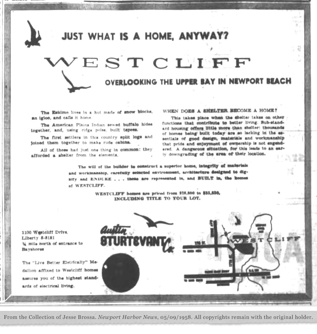 The Newport Beach Public Library has a local newspaper archive that reaches back to the 1940’s and a lot of these ads are from that archive. Maybe it reflects some emotional economy of the day, but the ads are noticeably smaller and less illustrative in language and graphic usage than earlier years. The coming 1960’s and 1970’s changed that, but in the 1950’s the advertisements seem more direct with less frills.