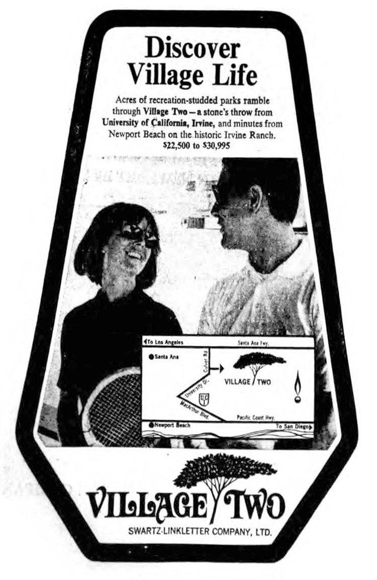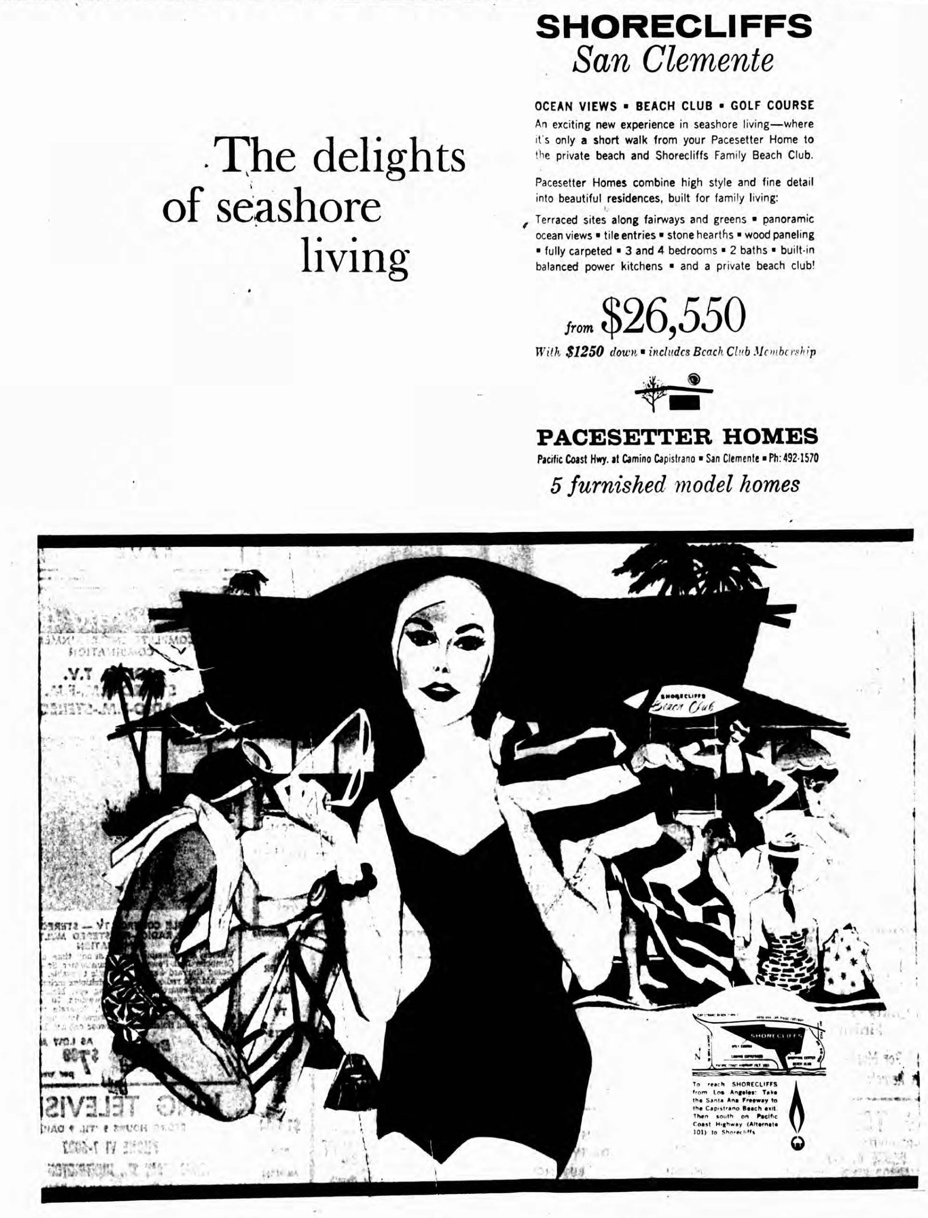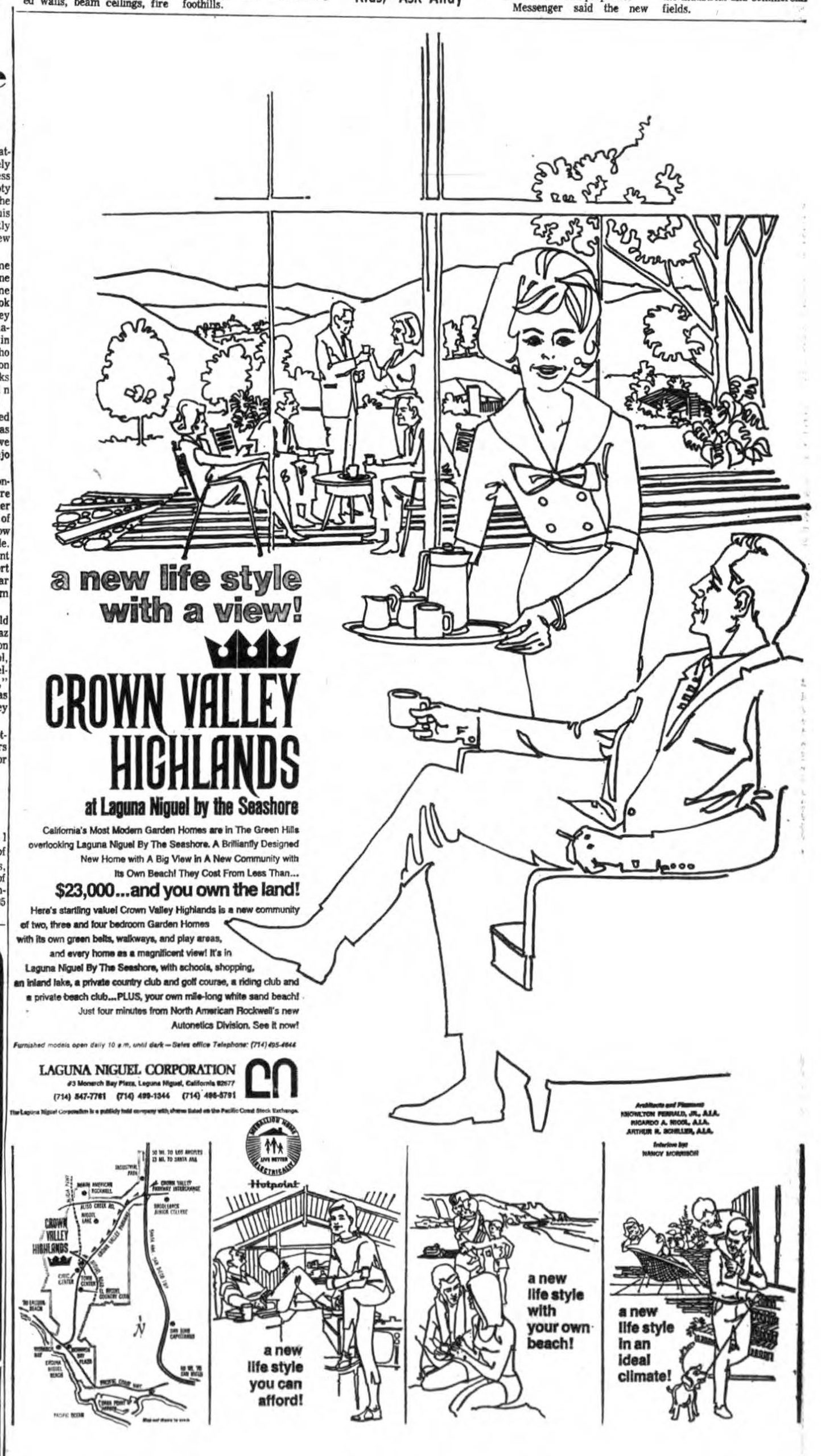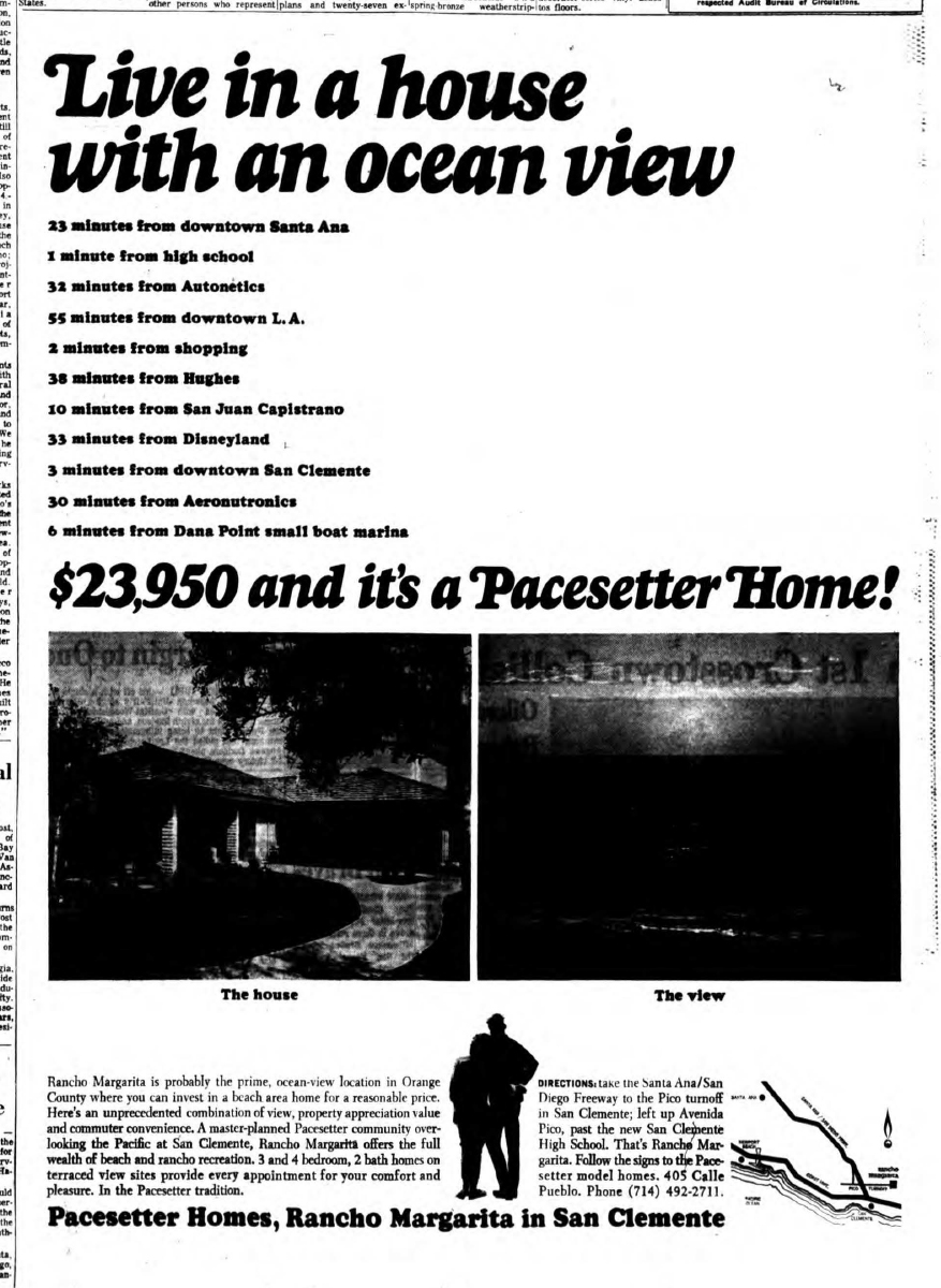 Real estate advertising in the 1960’s in Orange County followed the trends of years before – always selling the coastal-close destinations, but now introducing ideas of Mid-Century Modernism as something that could be attained at the production-level in a home.