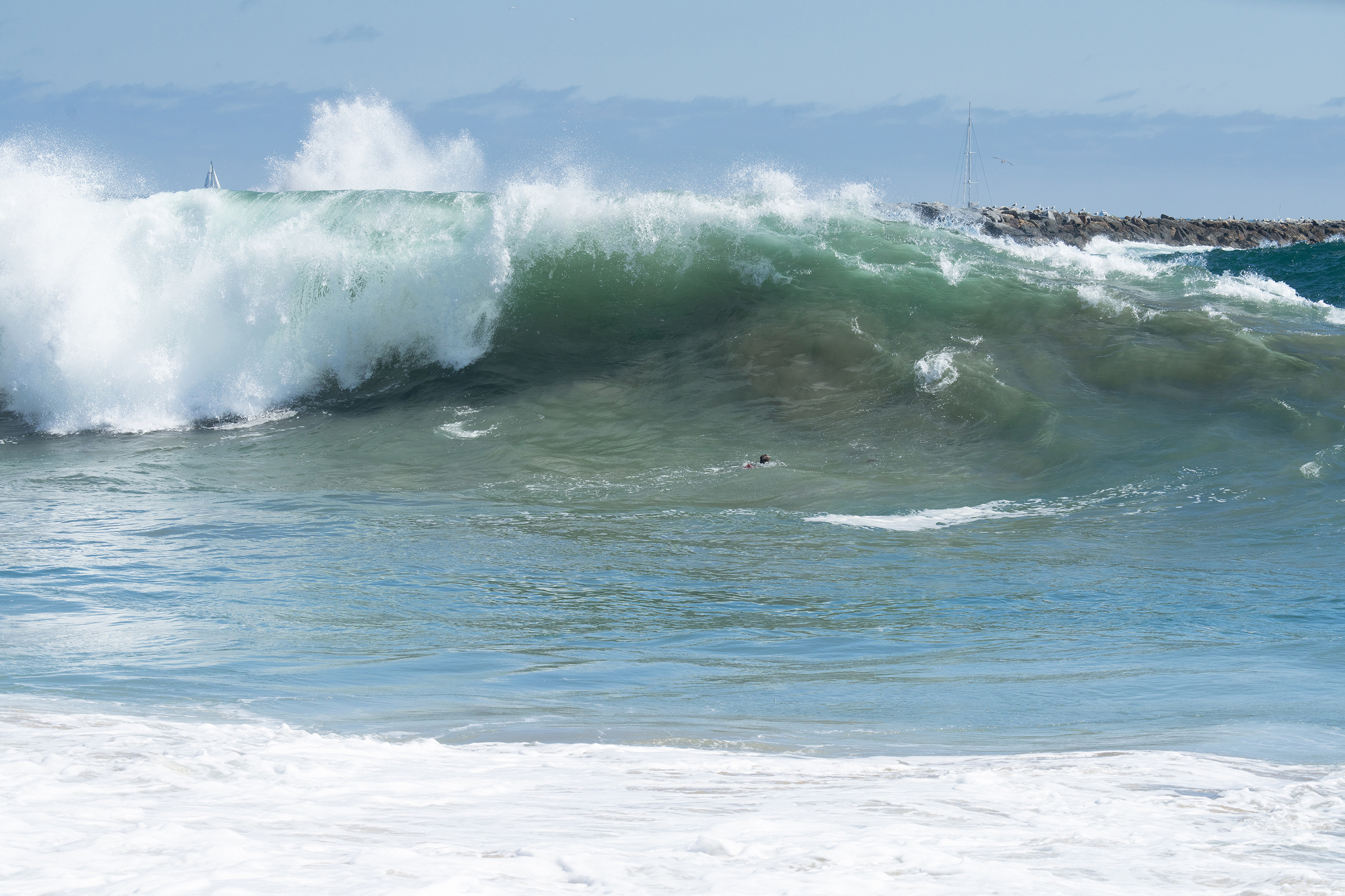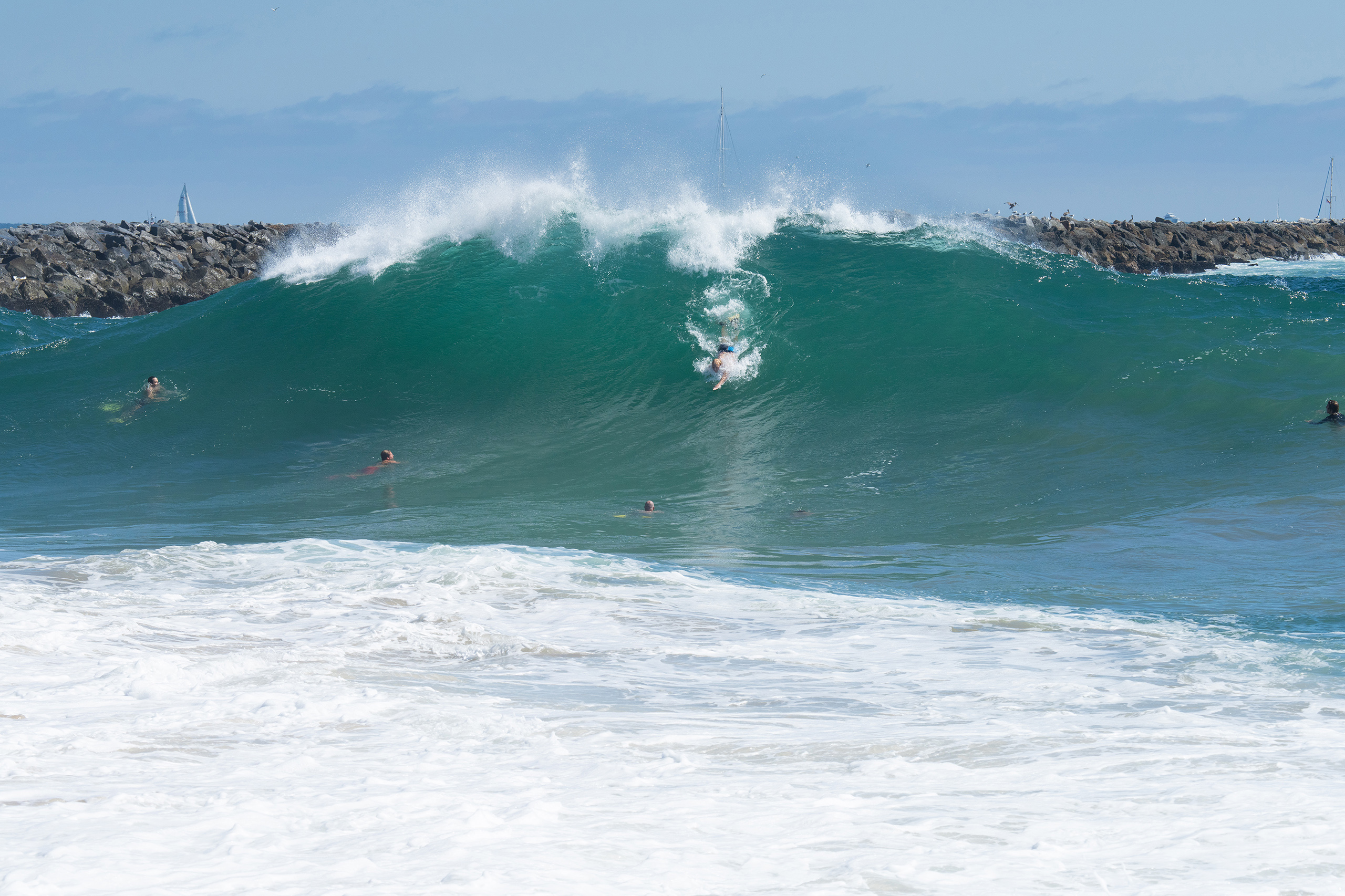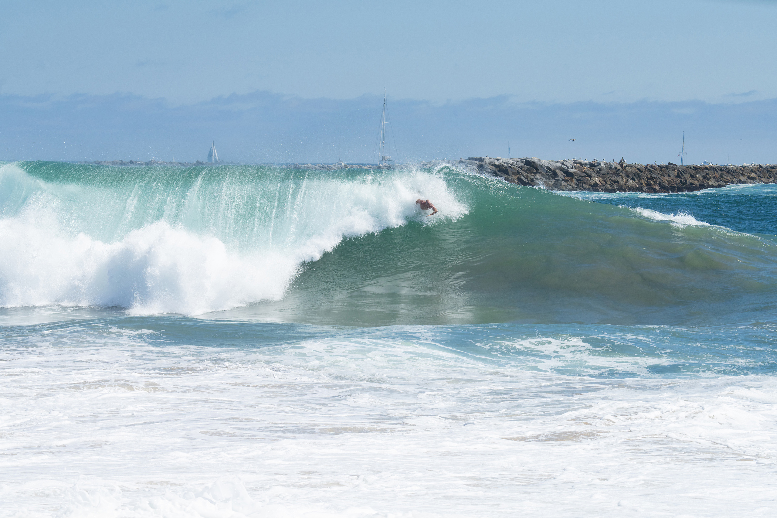 Picking up where the last blog post left off, we finally got up to The Wedge in Newport. For those of you who haven’t been, it is a must-see when the surf is breaking… it is a breathtaking front row experience to big surf that you won’t find anywhere else around here… I bodysurf, but I won’t do The Wedge. I’m just not that crazy… I’ve taken enough poundings in my lifetime in much smaller surf to know better… but – I hail all the lunatics who paddle in there and drop into those grizzly beasts looking for glory… I hope the crowds’ shouts reach you!