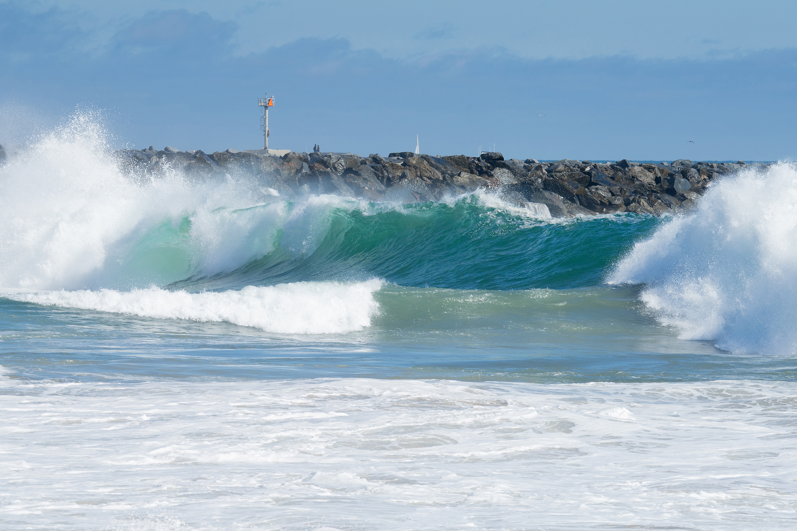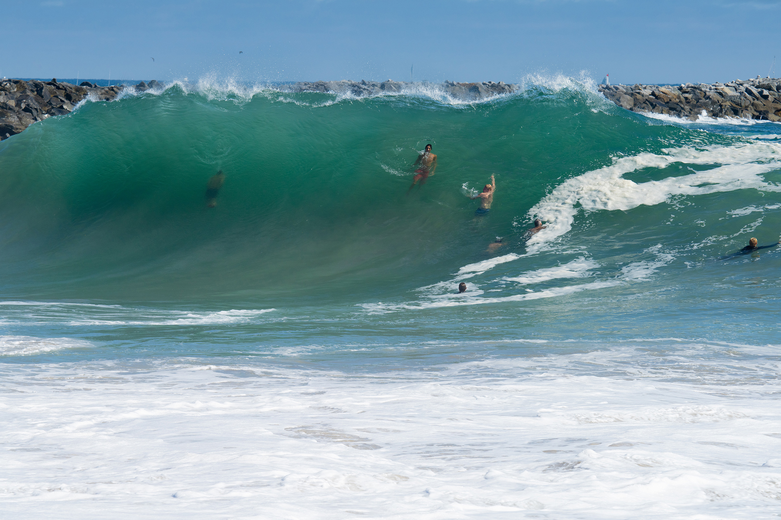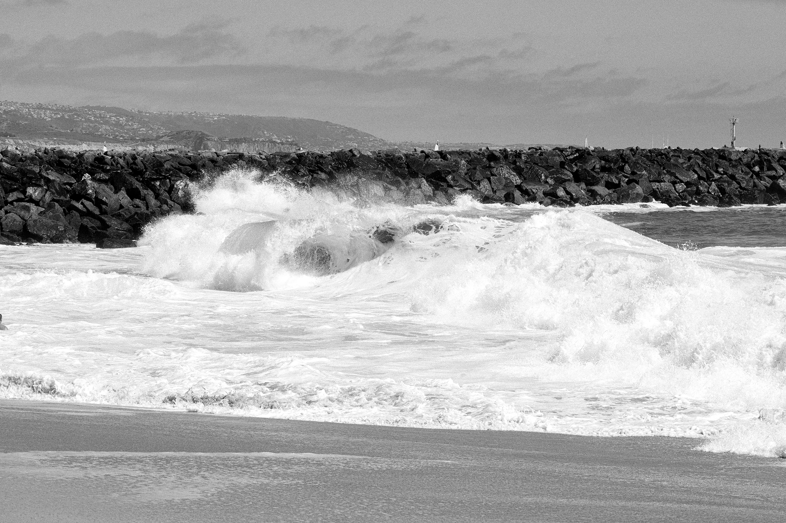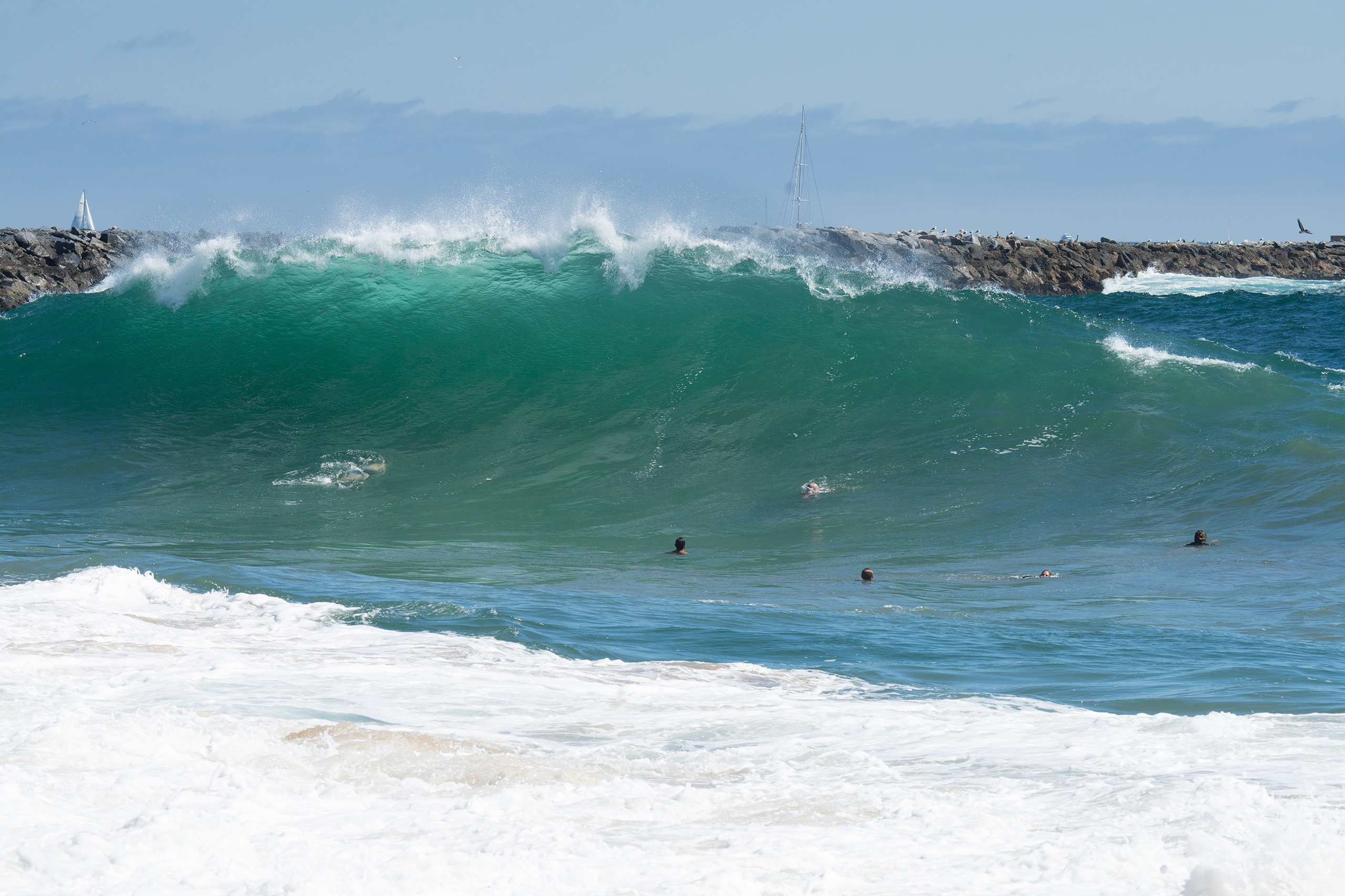 Picking up where the last blog post left off, we finally got up to The Wedge in Newport. For those of you who haven’t been, it is a must-see when the surf is breaking… it is a breathtaking front row experience to big surf that you won’t find anywhere else around here… I bodysurf, but I won’t do The Wedge. I’m just not that crazy… I’ve taken enough poundings in my lifetime in much smaller surf to know better… but – I hail all the lunatics who paddle in there and drop into those grizzly beasts looking for glory… I hope the crowds’ shouts reach you!